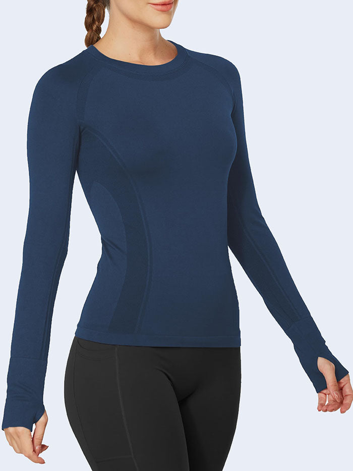 Mathcat Seamless Gradient Running Long Sleeve Athletic Shirts Navy