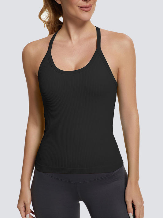 MATHCAT Square Collar Sleeveless Ribbed workout tank top with Built-in Bra
