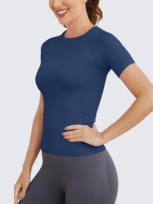 MathCat Seamless Soft Workout Tops T-shirt Navy