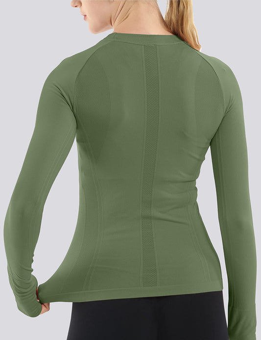 Mathcat Seamless Workout Shirts Breathable Long Sleeve Yoga Tops Army Green