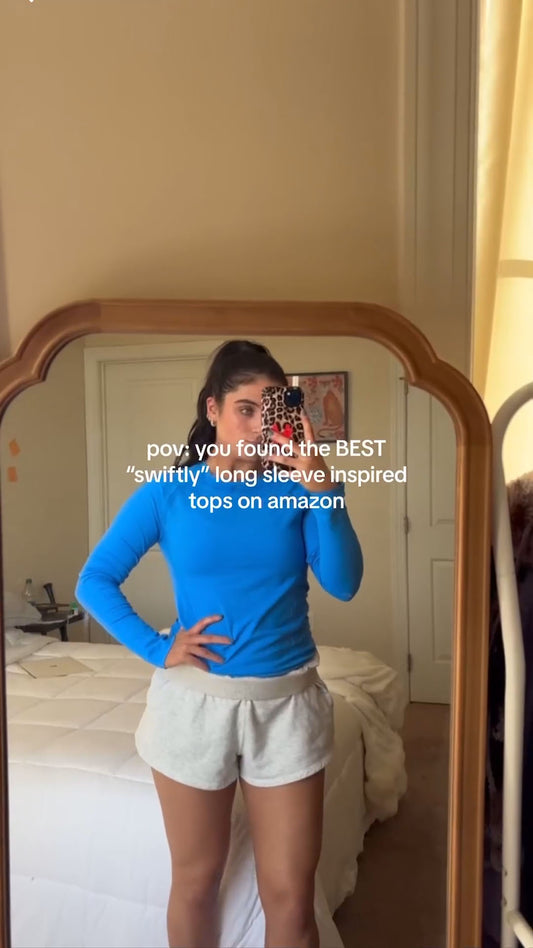 MathCat Long Sleeve Workout Shirts Women's Compression Shirts with Thumb Holes Peacock Blue