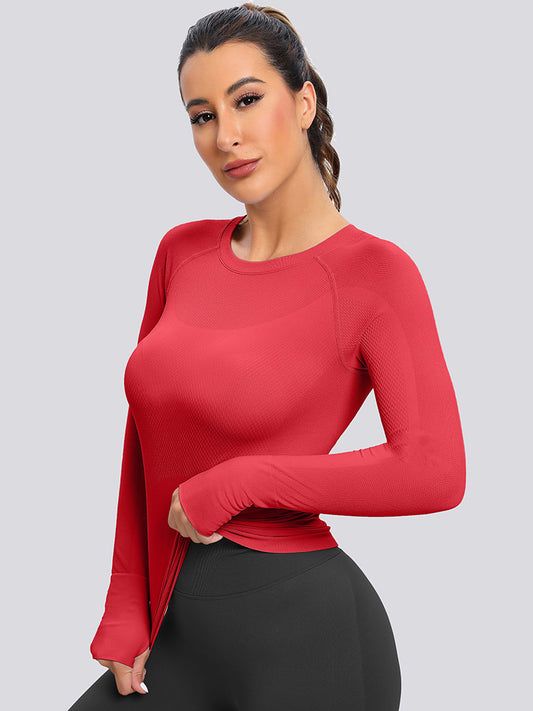 MathCat Seamless Long Sleeve Workout Shirts for Women Red