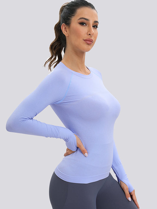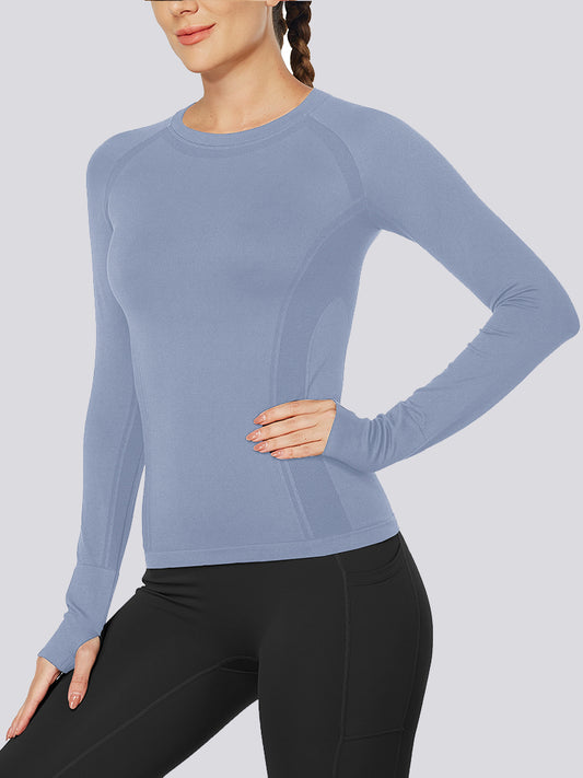 Mathcat Seamless Workout Shirts Breathable Long Sleeve Yoga Tops Blue Grey