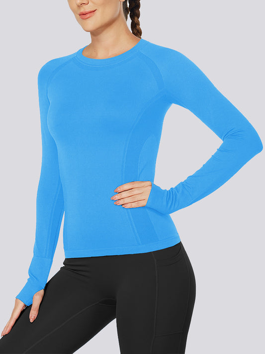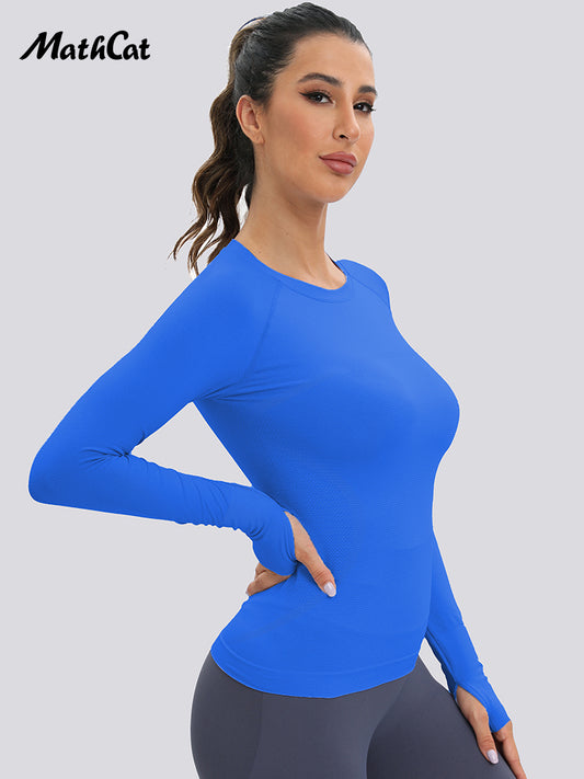 MathCat Long Sleeve Workout Shirts Yoga Running Women's Compression Shirts with Thumb Holes Blue02