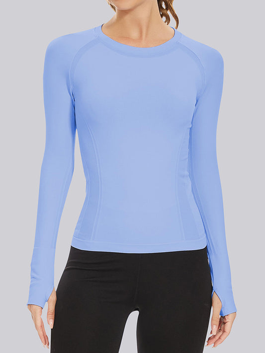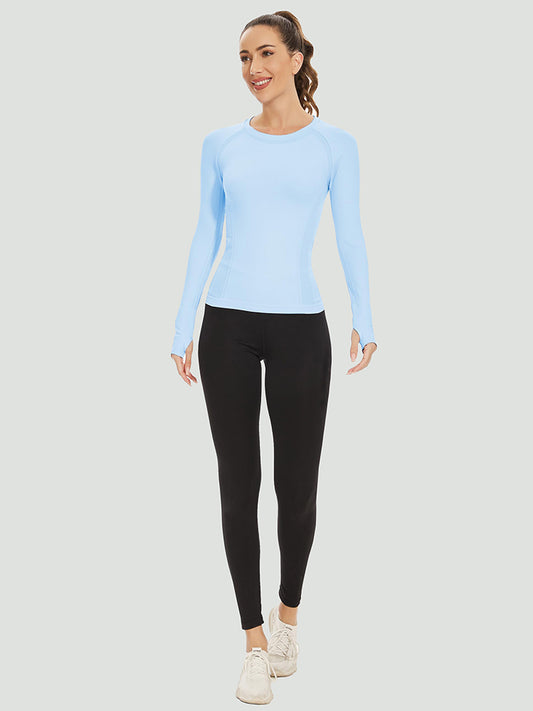 MathCat Long Sleeve Workout Shirts Yoga Running Women's Compression Shirts with Thumb Holes Skyblue