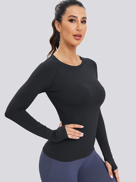 MathCat Long Sleeve Workout Shirts Yoga Running Women's Compression Shirts with Thumb Holes Black