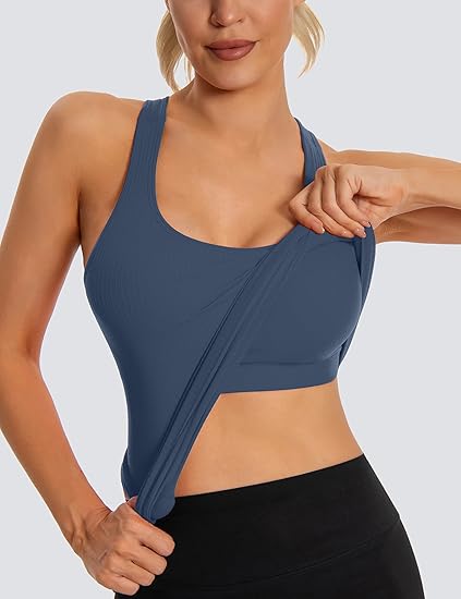MATHCAT Padded Scoop Neck Slimming Ribbed Gym Tank Top with Built in Bra Wholesale