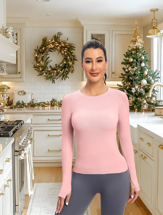MathCat Seamless Long Sleeve Workout Shirts for Women Pink