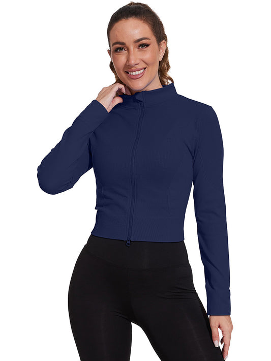 Mathcat Winter Seamless Workout Slim Fit Cropped Athletic Jackets Navy