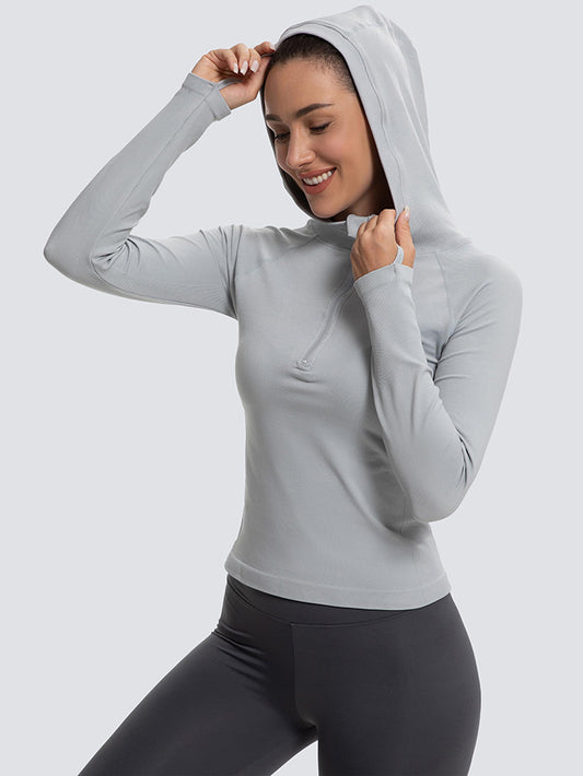 MathCat Long Sleeve Workout Zip Pullover Sweatshirt Hoodie with Thumb Hole