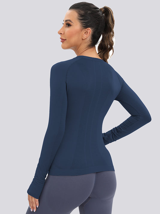 MathCat Breathable Seamless Long Sleeve Workout Shirts Sports Running Yoga Shirt Navy