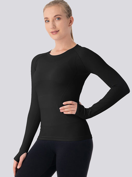 Mathcat Seamless Long Sleeve Workout Shirts for Women Black