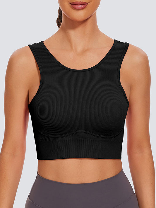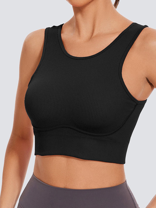 MathCat Seamless Ribbed Backless Medium Support Sports Bras with Removable Pads Black