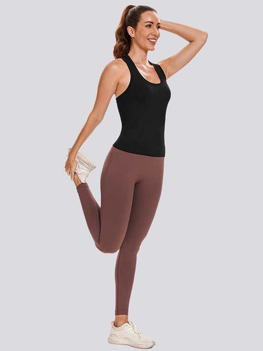 MATHCAT Padded Scoop Neck Slimming Ribbed Gym Tank Top with Built in Bra