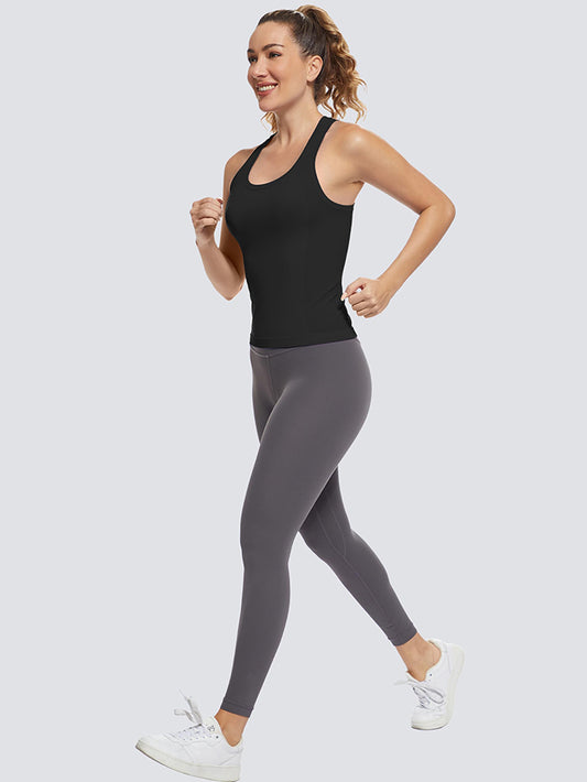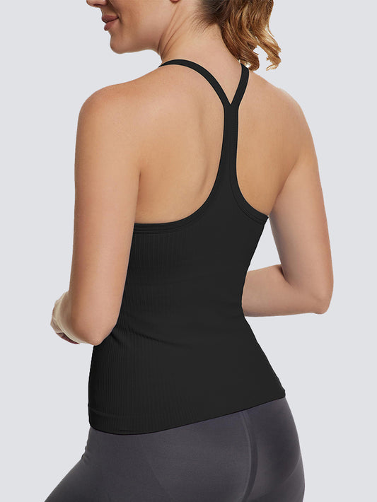 MathCat Ribbed Soft Seamless Workout Racerback Tank Tops with Built-in Bra Black