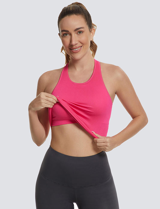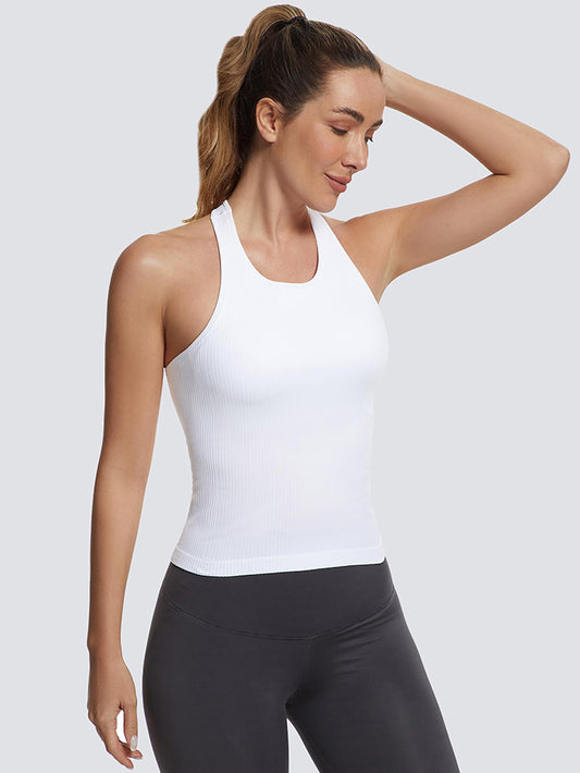 MathCat Ribbed Racerback Crop Workout Tank Top for Women with Built-in Bra