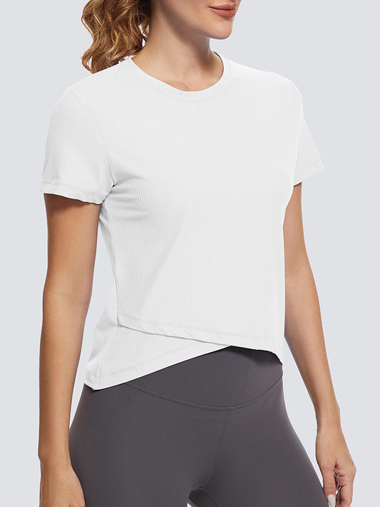 MathCat Cross Hem Workout Shirts Ribbed Seamless Sports White