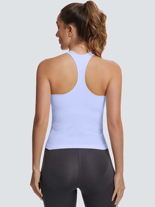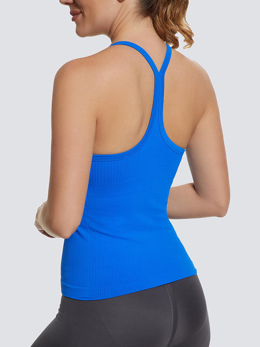 MathCat Ribbed Soft Seamless Workout Racerback Tank Tops with Built-in Bra Kleinblue