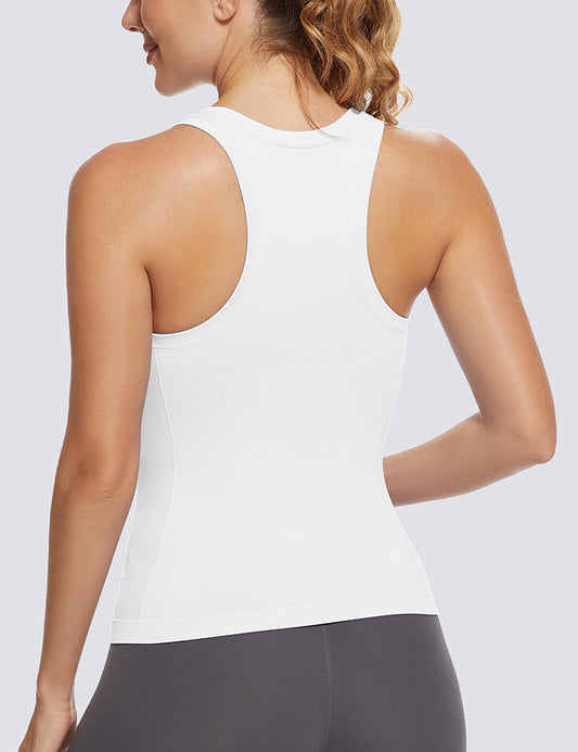 MathCat Women Racerback Seamless Running Tank Tops Workout Tops White
