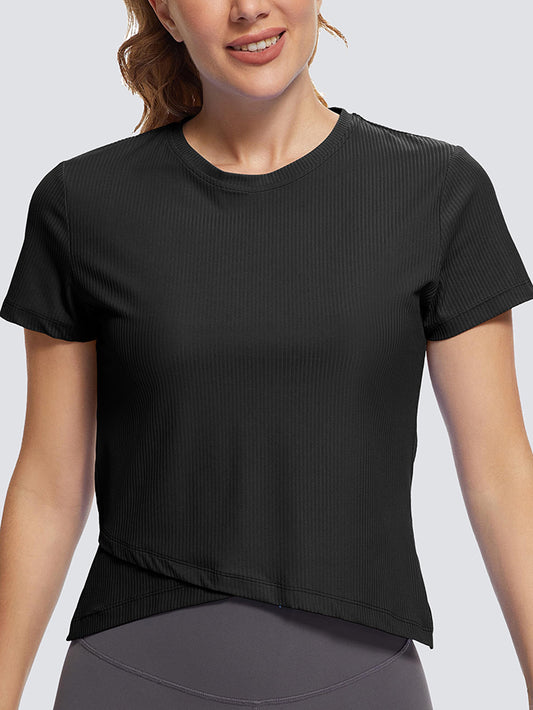 MathCat Cross Hem Workout Shirts Ribbed Seamless Sports Black