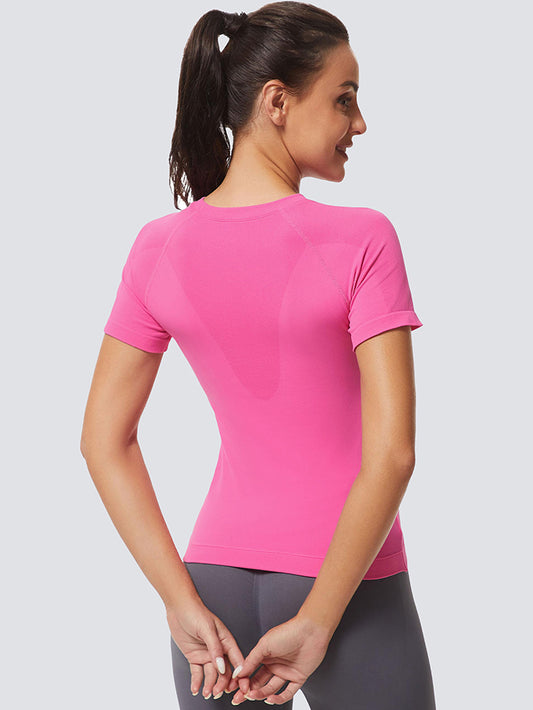 MathCat Slim Cross Hem Compression Workout T-shirt Peach Pink