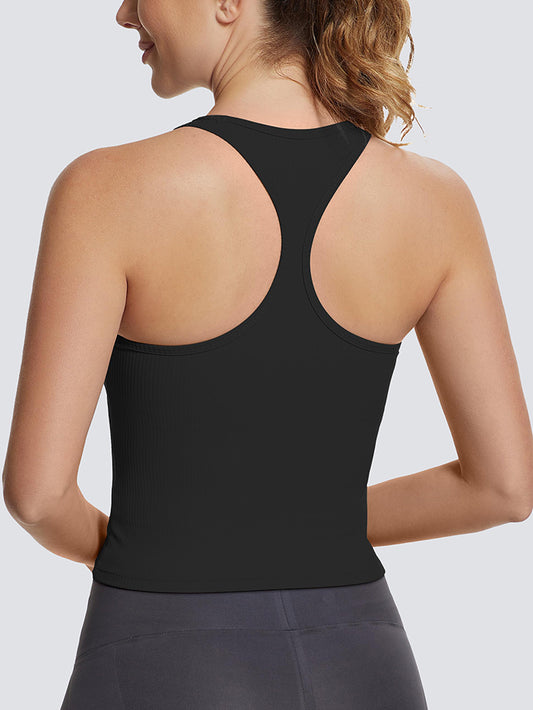 MathCat Square Collar Sleeveless Ribbed Racerback Vest with Built-in Bra Black