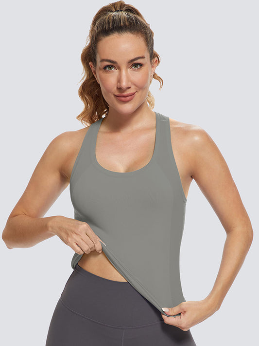 MathCat Ribbed Soft Seamless Workout Racerback Tank Tops with Built-in Bra White