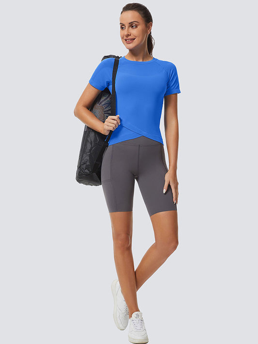 MathCat Slim Cross Hem Compression Workout T-shirt Lake Blue