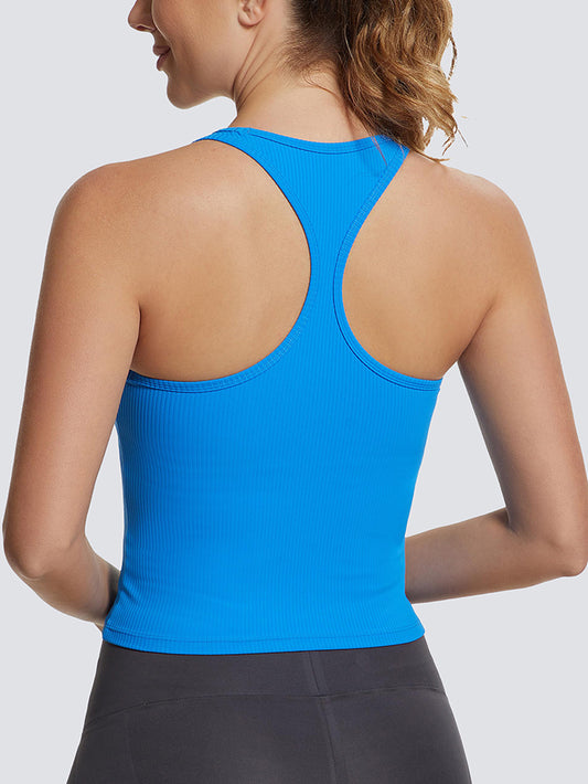 MathCat Square Collar Sleeveless Ribbed Racerback Vest with Built-in Bra Blue
