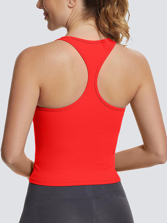 MathCat Ribbed Soft Seamless Workout Racerback Tank Tops with Built-in Bra Red